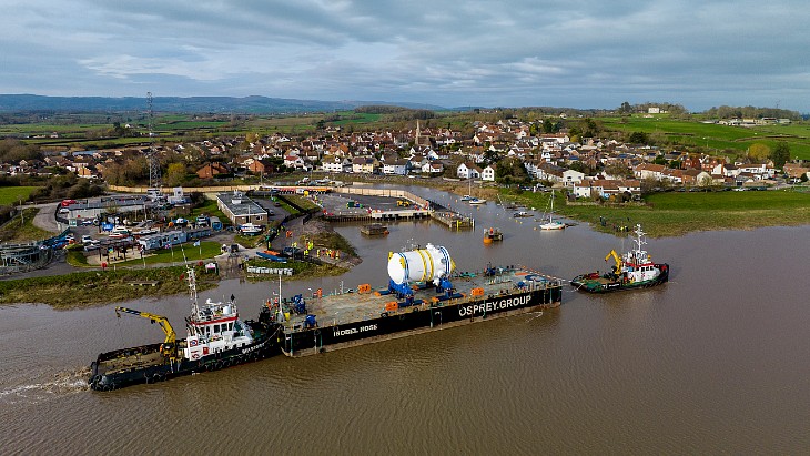 Rečna luka Combwich je bila prenovljena za pretovor izredno težkih komponent za Hinkley Point C (Vir: EDF)