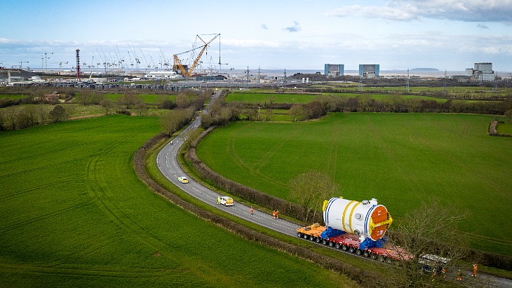 Fotografije je posnel EDF in prikazujejo zadnjo fazo transporta 13 m dolge in 500 t težke reaktorske tlačne posode. Sestavni del nove jedrske elektrarne je proizvedel Framatome v svojem obratu Le Creusot v osrednji Franciji. EDF Energy je sporočil, da so zaposleni porabili 80.000 inženirskih ur za izdelavo komponente.